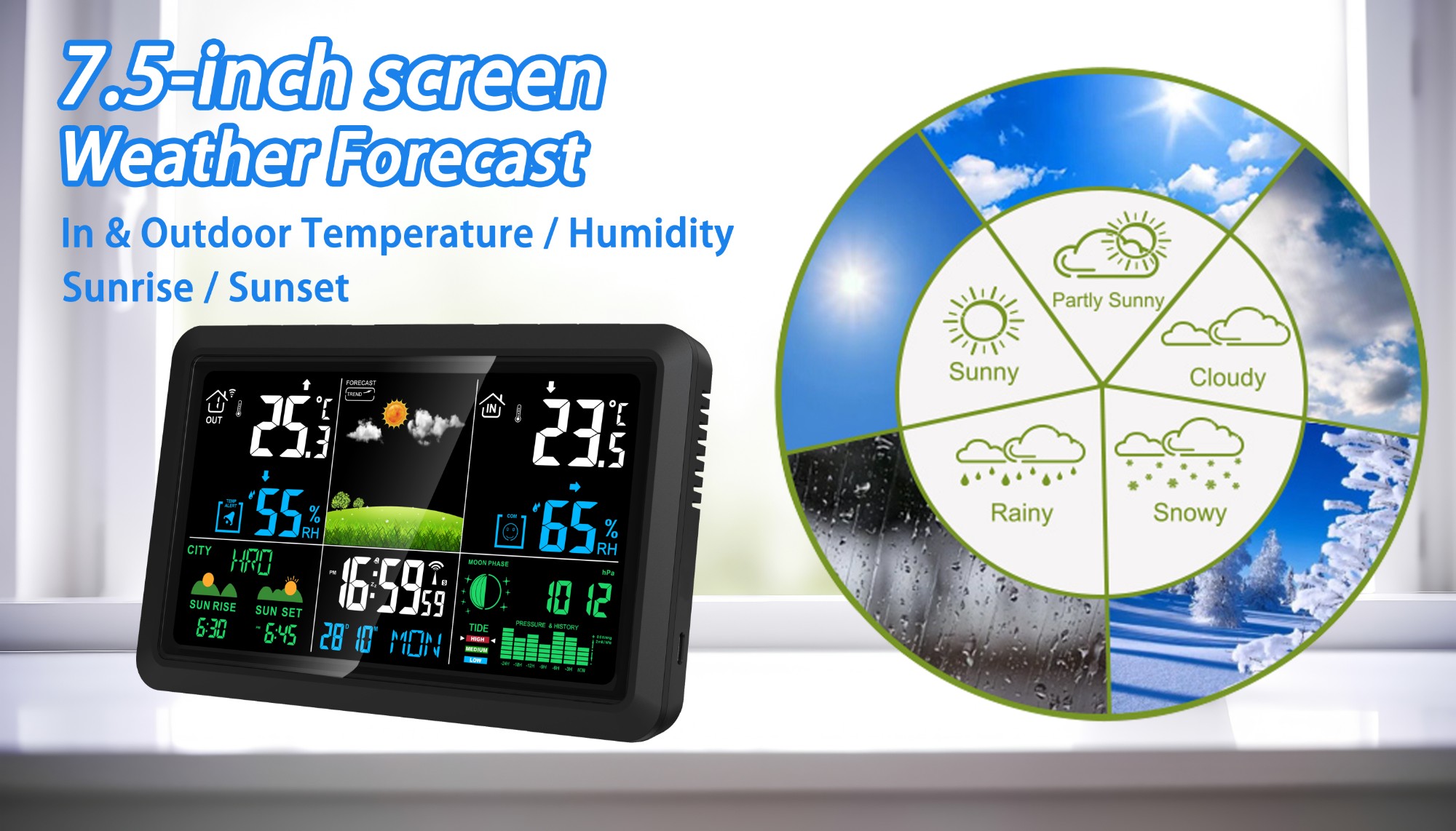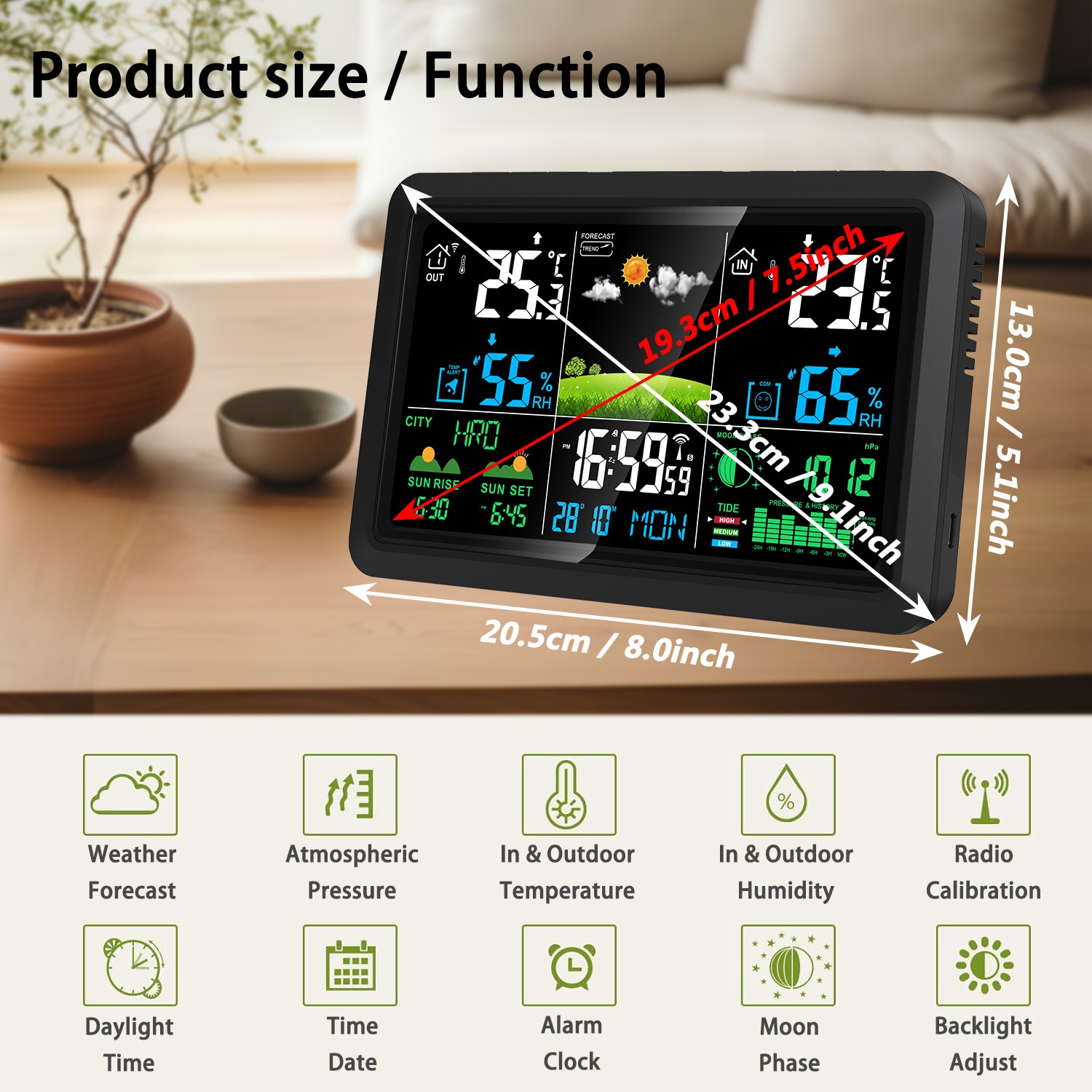 1. Indoor and outdoor temperature and humidity9. Radio Controlled Function