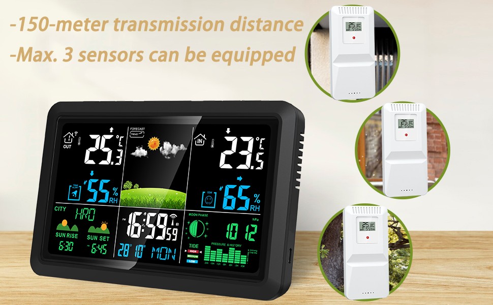 Specification: Unit Dimension: Host Size:20.5*2.6*13.1cm Sensor size:5*2.6*10.5cm Power: Host Power:DC 5V 1A Adptor (Included)/Dry cell 1.5V AAA*3(Not Included) Sensor Power:Dry cell 1.5V AAA*2(Not Included) Material: ABS